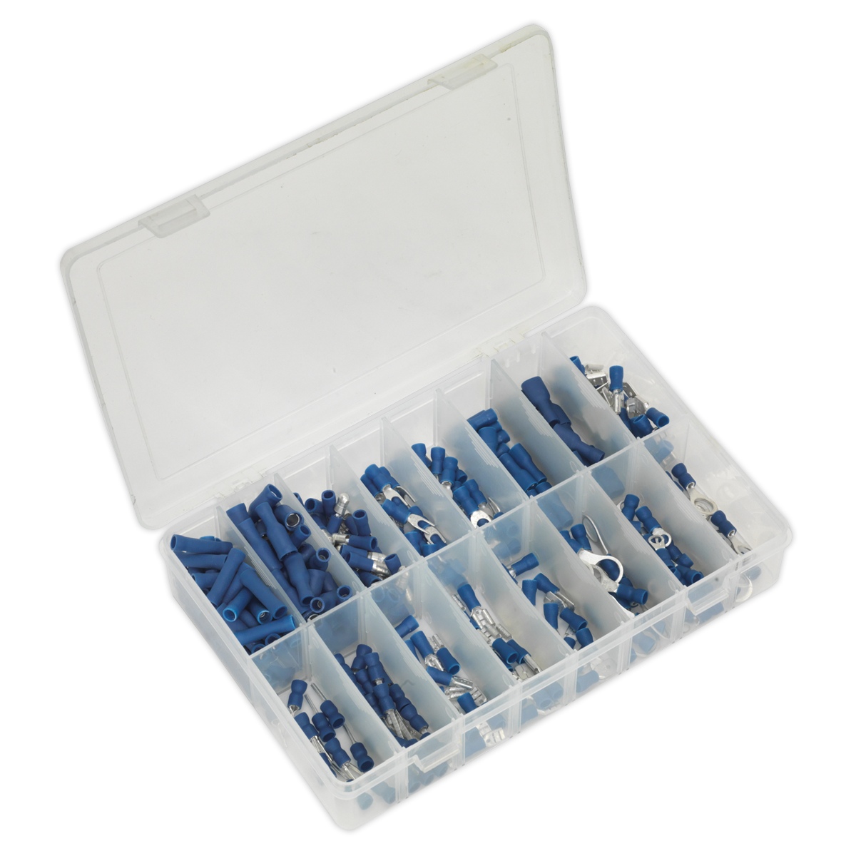 Contents: (Approximate Quantity) Bullet; Ø5mm (x35), Butt Connector; Ø4.5mm (x40), Easy-Entry Blade; 18mm x 2.3mm (x40), Easy-Entry Fork; Ø3.7mm(4BA) (x10), Ø5.3mm(2BA) (x10), Easy-Entry Pin; 12mm x Ø1.9mm (x10), Easy-Entry Ring; Ø4.3mm(4BA) (x10), Ø6.4mm(1/4") (x10), Ø10.5mm(3/8") (x10), Female Socket; Ø5mm (x35), Fully Insulated Female; 4.8mm (x10), 6.3mm (x10), Piggy-Back; 6.3mm (x20), Push-On Female; 4.8mm (x10), 6.3mm (x10), Push-On Male; 6.3mm (x10)