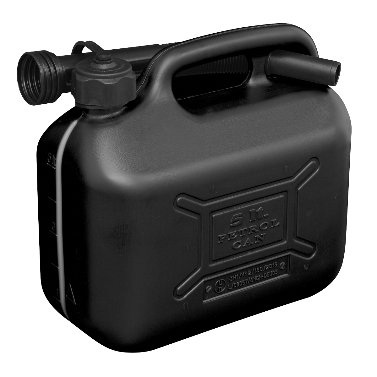 • 5L Plastic fuel can with safety screw lock cap and flexible spout.