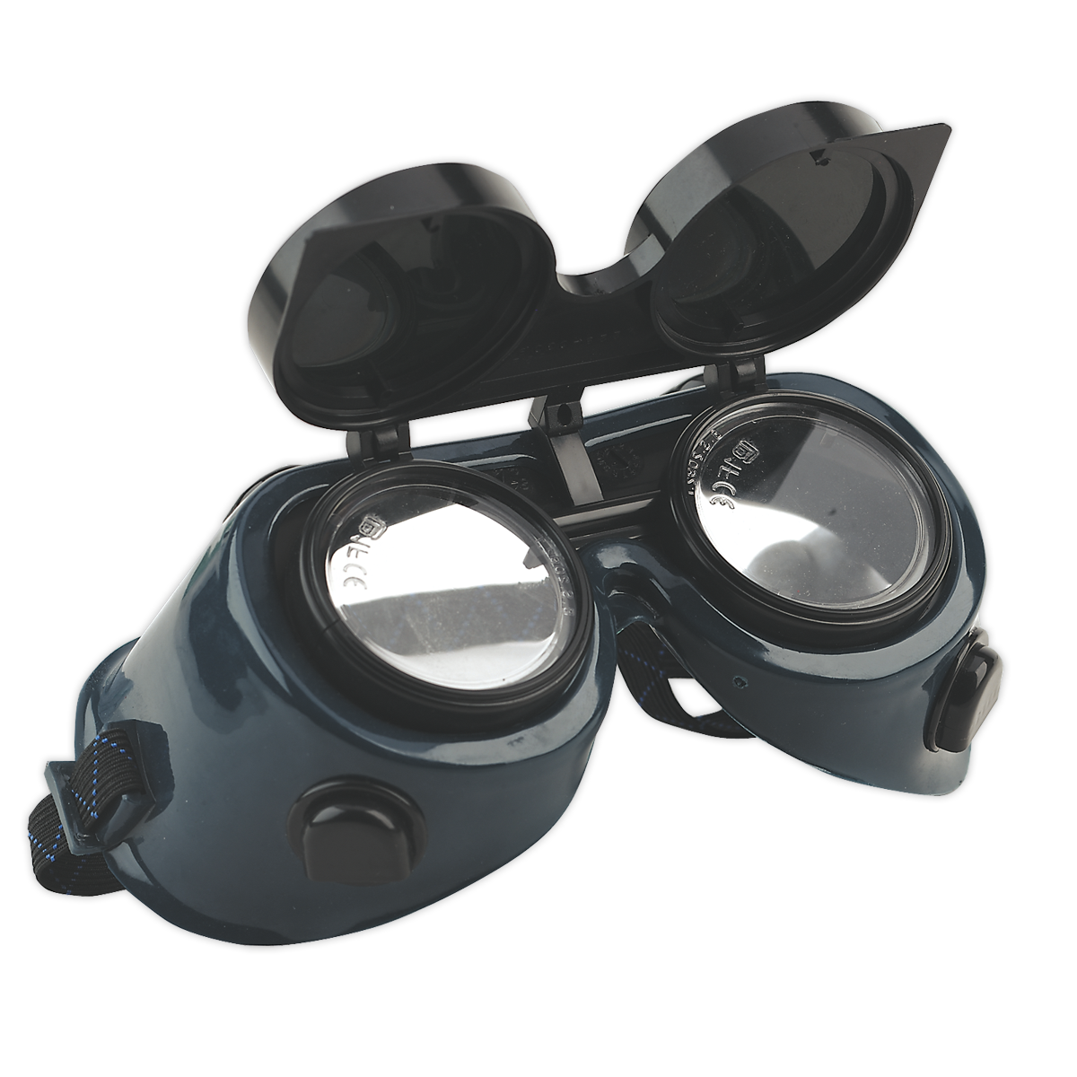 • Clear polycarbonate safety lenses with shade 5 flip-up lenses.
