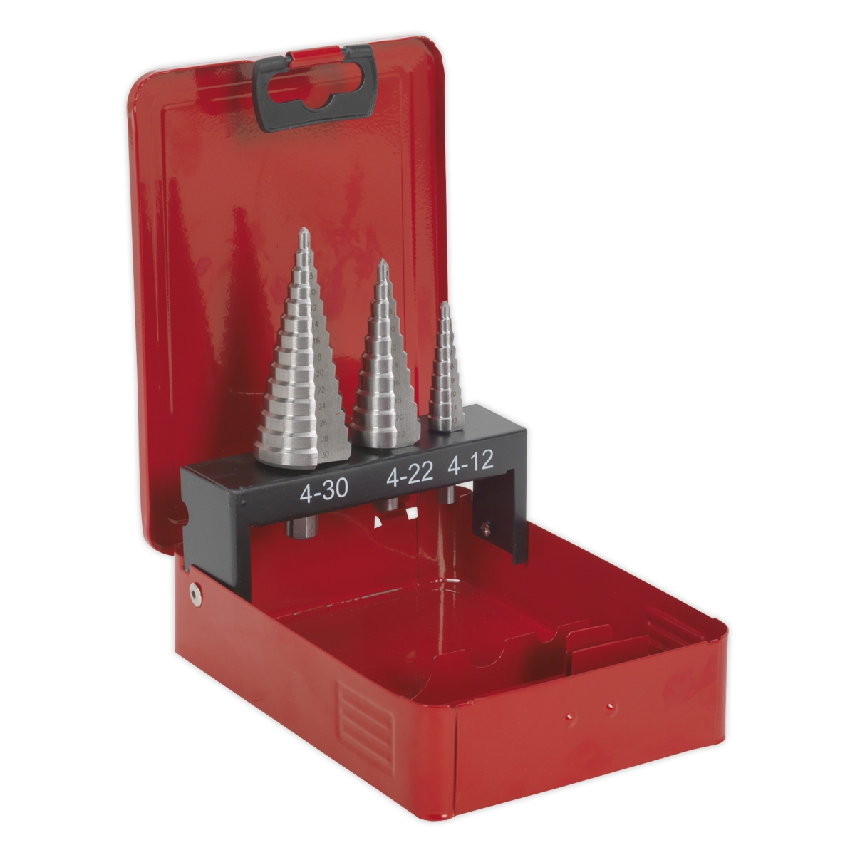 • Allows clog-free, precision drilling of 18 different size holes with just three bits.