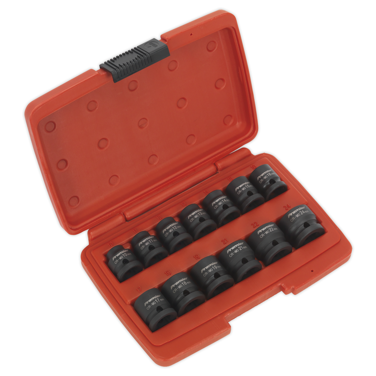 • Hardened and heat treated Chrome Molybdenum steel impact sockets with a phosphate finish for corrosion resistance.