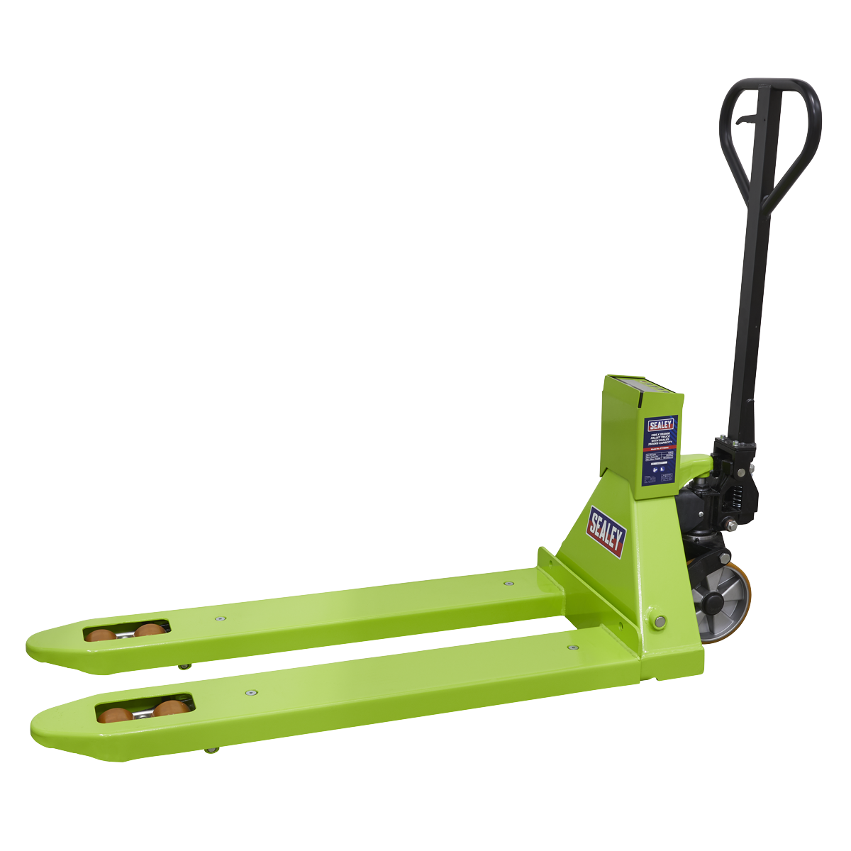 • Heavy-duty pallet truck suitable for warehouse and general handling duties.