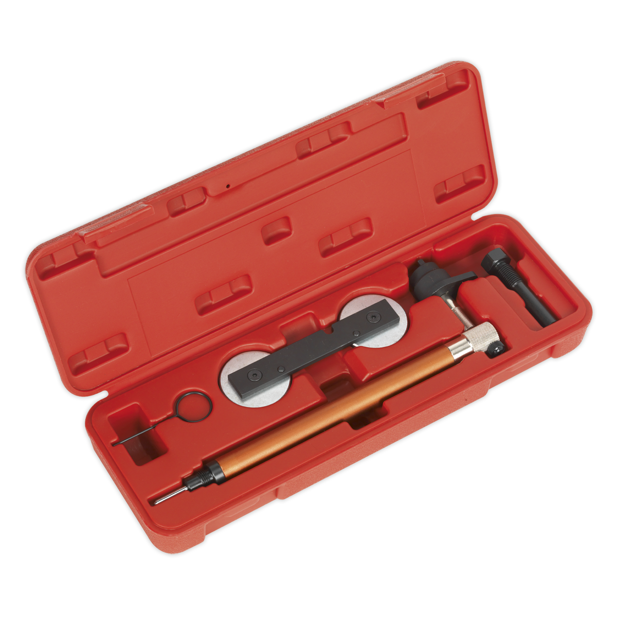 • Kit contains essential tools for crank TDC positioning, camshaft setting and tensioner locking.