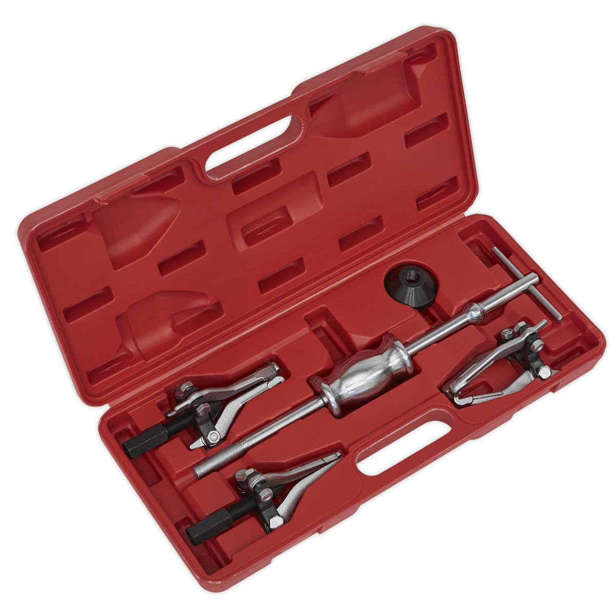 • Set includes three sets of 100mm triple leg pullers with locking features which clamp the jaws firmly inside/outside the gear or bearing.