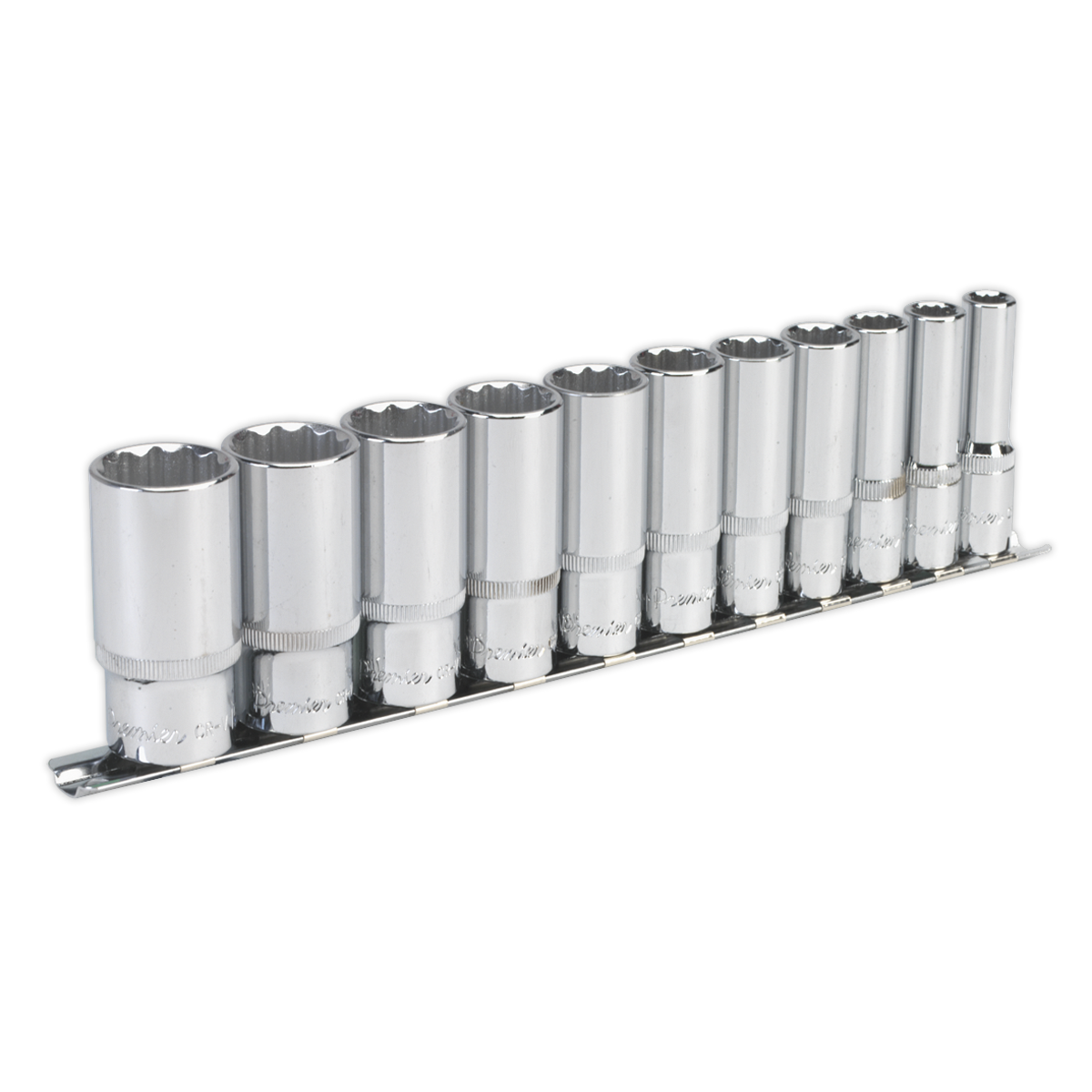 • Cold-forged Chrome Vanadium steel 12-point sockets, hardened and tempered for added strength.