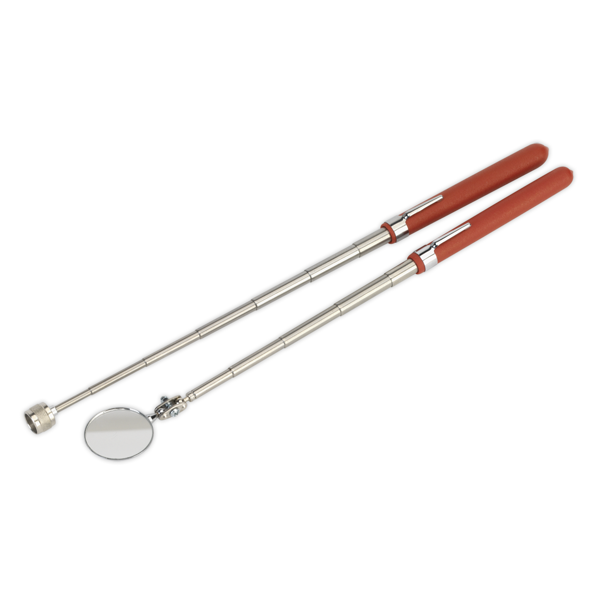 • 5-Section stainless steel inspection mirror with textured grip and pocket-clip.